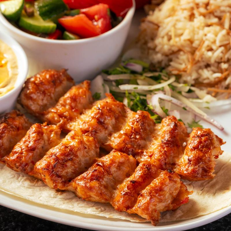 Includes beef lula, chicken lula, pork ribs, chicken breast, BBQ potatoes, grilled tomato/jalapeño, rice, summer salad, all served in a foil plate.